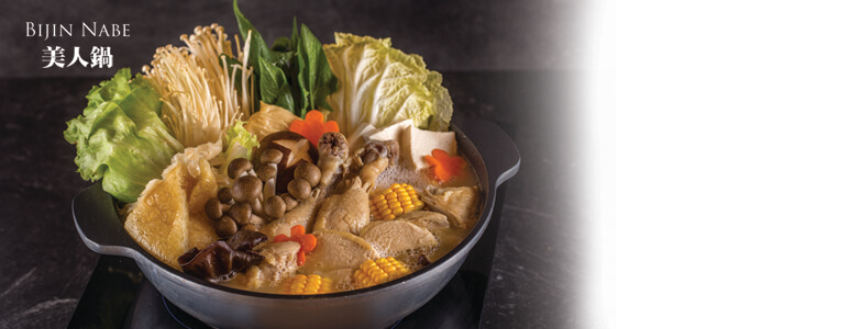 The uniqueness of Bijin Nabe Beauty Hotpot comes a rich, exquisite broth made using the natural collagen from selected chicken which is tastier and richer in collagen. Producing the famous broth involves a long process in which the meat and bones are stewed with fresh ingredients over an 8-hour period. This allows all the the collagen from the bones and meat to be completely dissolved into the stock.